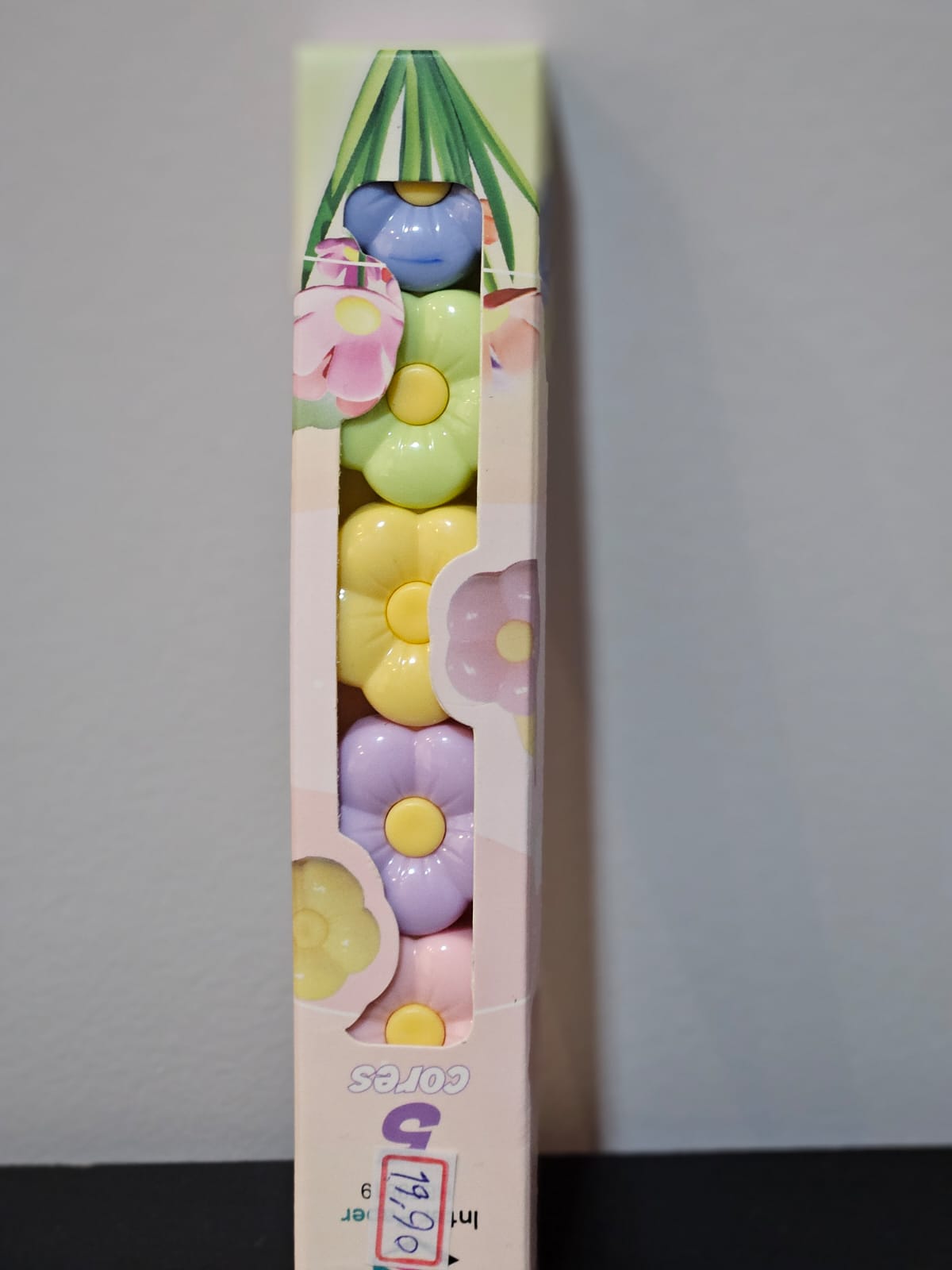 marca texto em formato de flor em 6 cores.